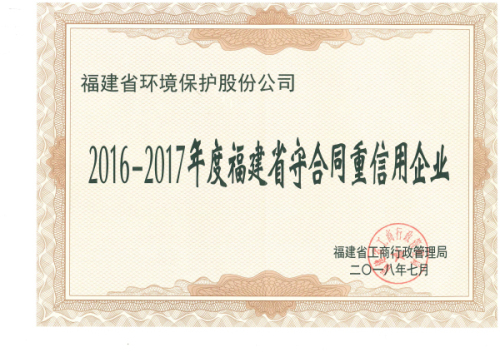 ●  2018年07月 榮獲2016—2017年度福建省“守合同重信用企業(yè)”
