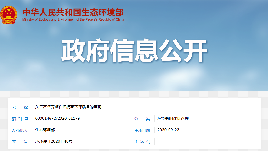 生態(tài)環(huán)境部關(guān)于嚴(yán)懲弄虛作假提高環(huán)評質(zhì)量的意見