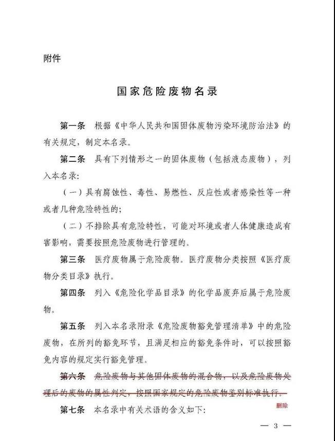 《名錄(修訂稿)》(二次征求意見稿)包括正文、附表《國家危險廢物名錄》、附錄《危險廢物豁免管理清單》。