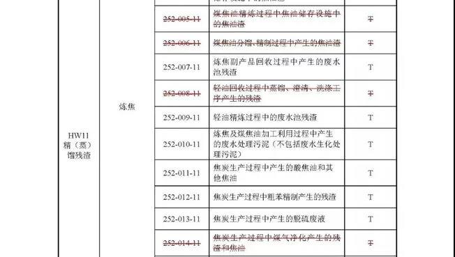 4.修改煤焦化相關(guān)危險廢物的規(guī)定。針對該類廢物重點從兩個方面進行修改:一是重新梳理并明確了煤焦化過程產(chǎn)生的各類危險廢物及其工藝來源;二是根據(jù)不同煤焦油的利用途徑,在《危險廢物豁免管理清單》中增加當(dāng)煤焦油用于生產(chǎn)煤基氫化油、碳素材料、炭黑時,滿足一定條件利用過程可不按危險廢物管理的規(guī)定。