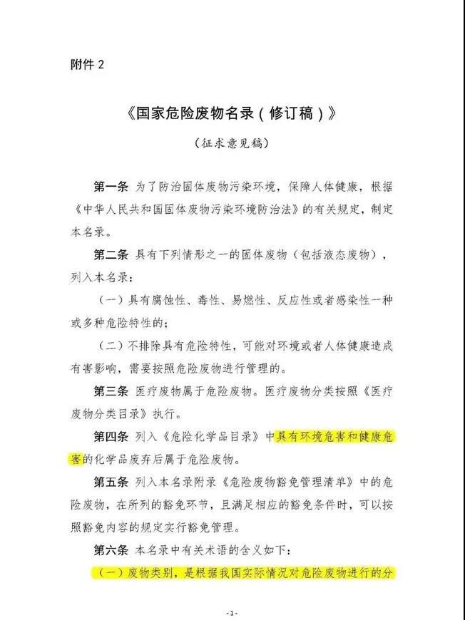 《國家危險廢物名錄(修訂稿)》(二次征求意見稿)