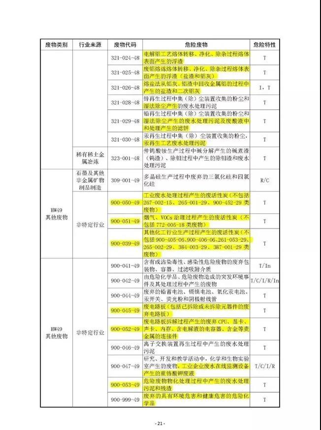 此外,修改了69 種危險廢物的文字表述或危險特性表述。