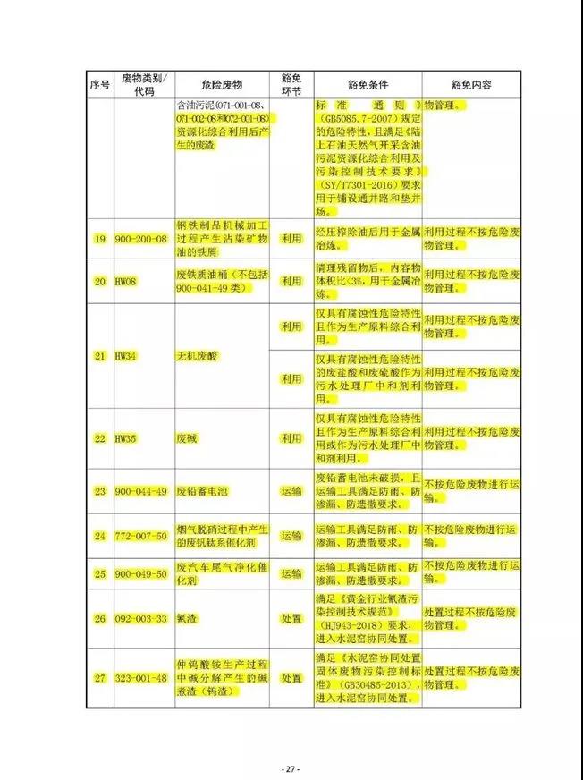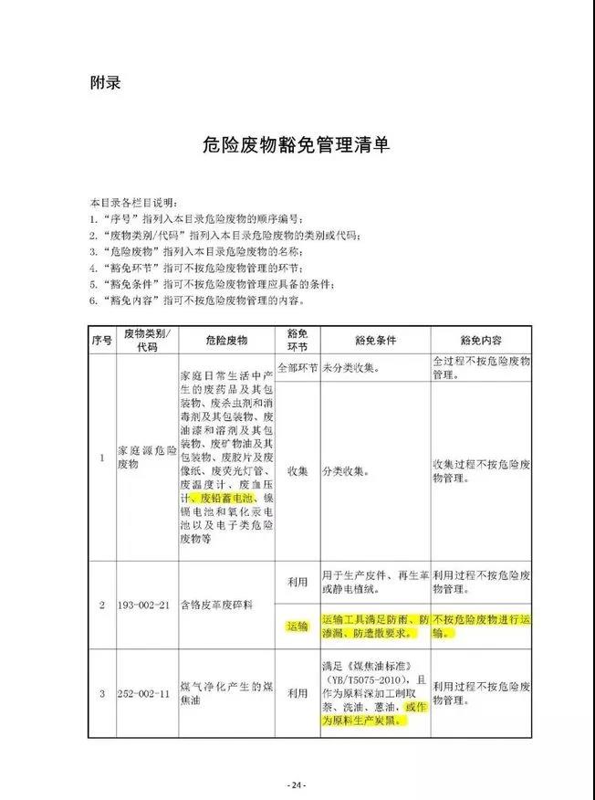 第四條列入本名錄附錄《危險廢物豁免管理清單》中的危險廢物,在所列的豁免環(huán)節(jié),且滿足相應(yīng)的豁免條件時,可以按照豁免內(nèi)容的規(guī)定實行豁免管理。