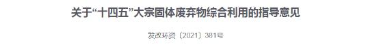 國(guó)家發(fā)改委、生態(tài)環(huán)境部等十部委聯(lián)合發(fā)布《關(guān)于“十四五”大宗固體廢棄物綜合利用的指導(dǎo)意見》