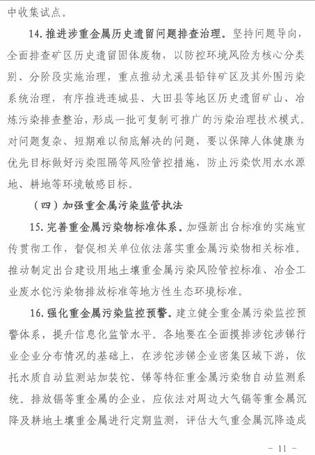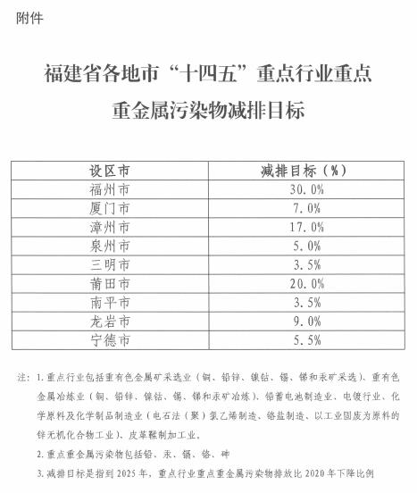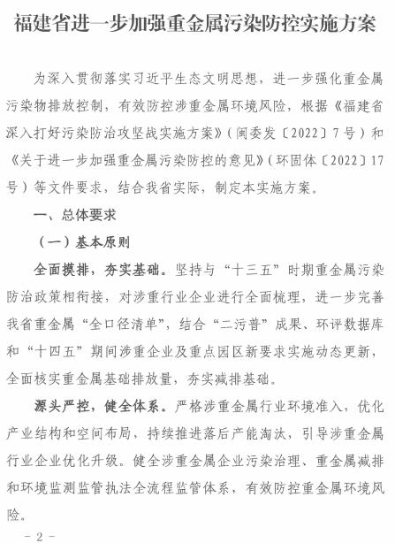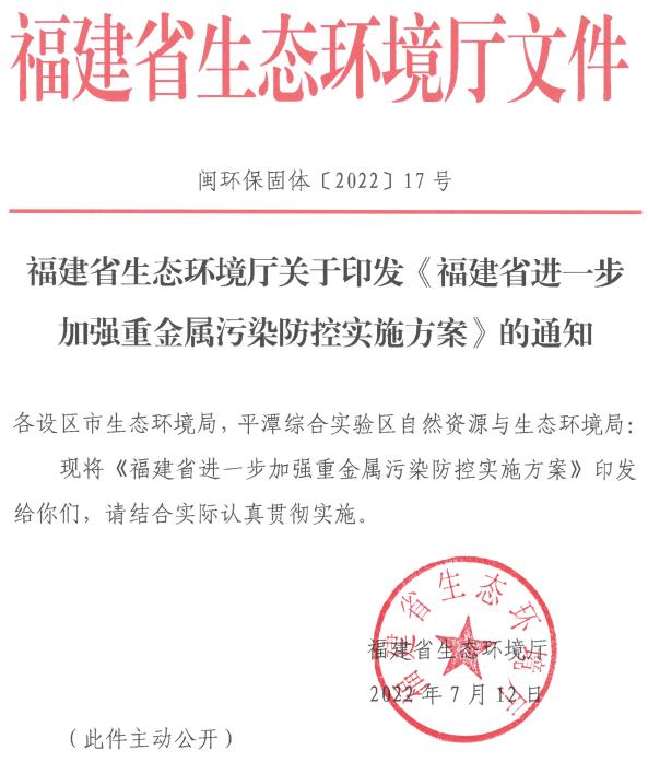 福建省發(fā)布進(jìn)一步加強(qiáng)重金屬污染防控實(shí)施方案